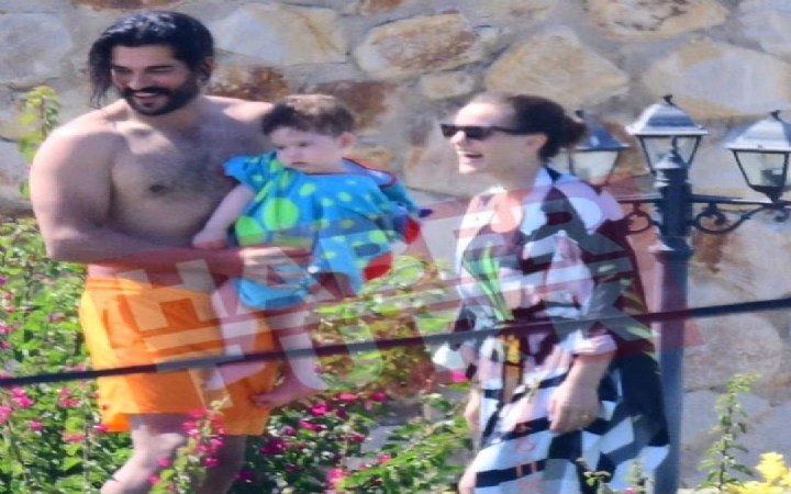 Burak Özçivit - Fahriye Evcen çifti, çocukları Karan ile birlikte Bodrum'da bulunan evlerinde görüntülendi.