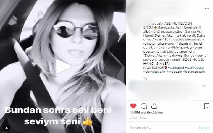 Aslı Hünel’in bu videosu Instagram’daki magazin sayfalarında paylaşılırken kullanıcılar tarafından acaba kimleri kastediyor yorumlarına neden oldu.