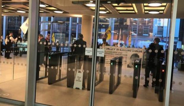 Terör örgütü PKK sempatizanları, dün, TRT Worldün Grays I Roaddaki merkezine mevrut ve yapının lobisine girmişti.